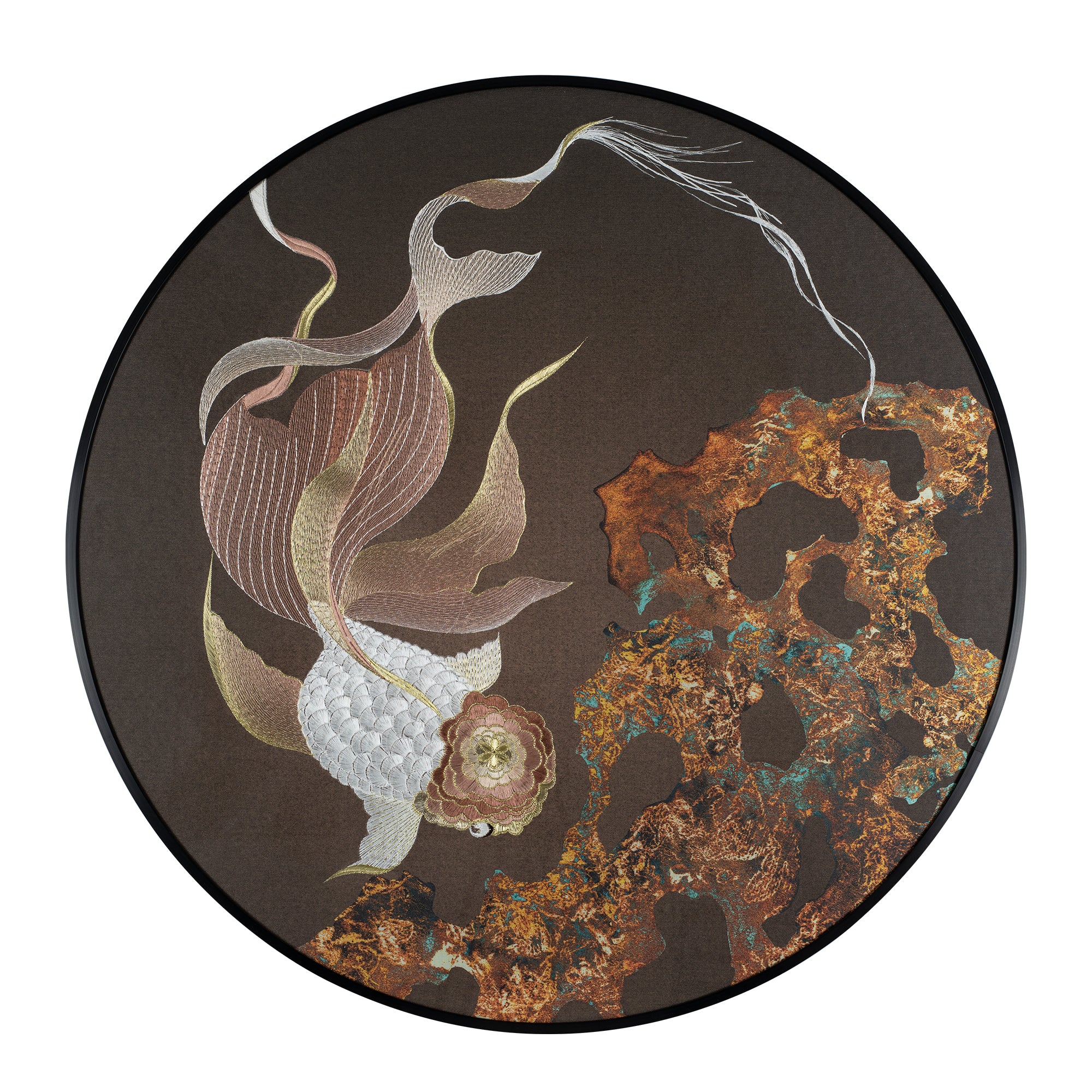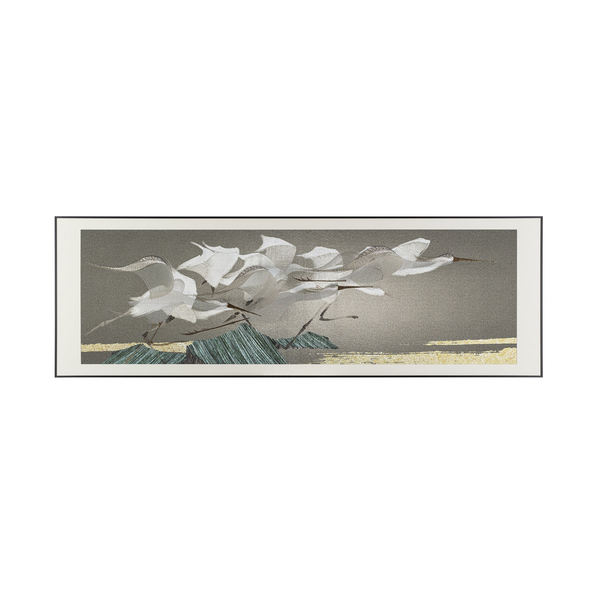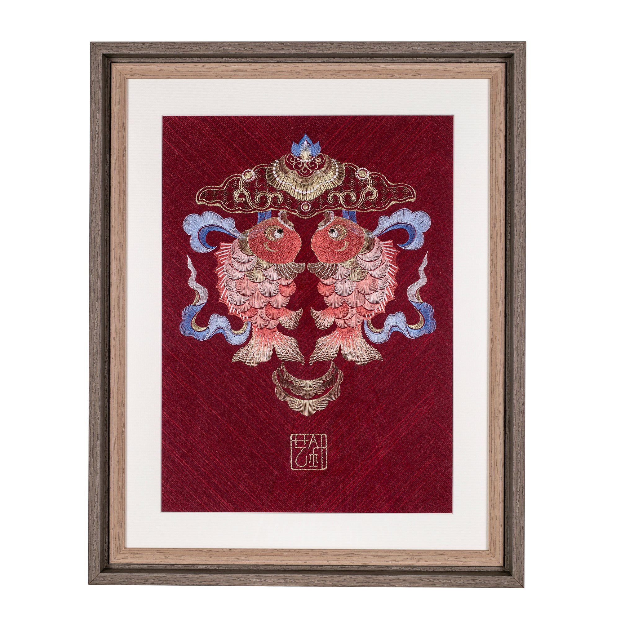 Japandi interiors blend the warmth of Scandinavian design with the minimalism of Japanese aesthetics. Choose embroidered art with clean lines and subtle details, such as single fish, cranes, or geometric patterns. Display it against a backdrop of light wood tones and soft textiles to create a balanced, inviting space.