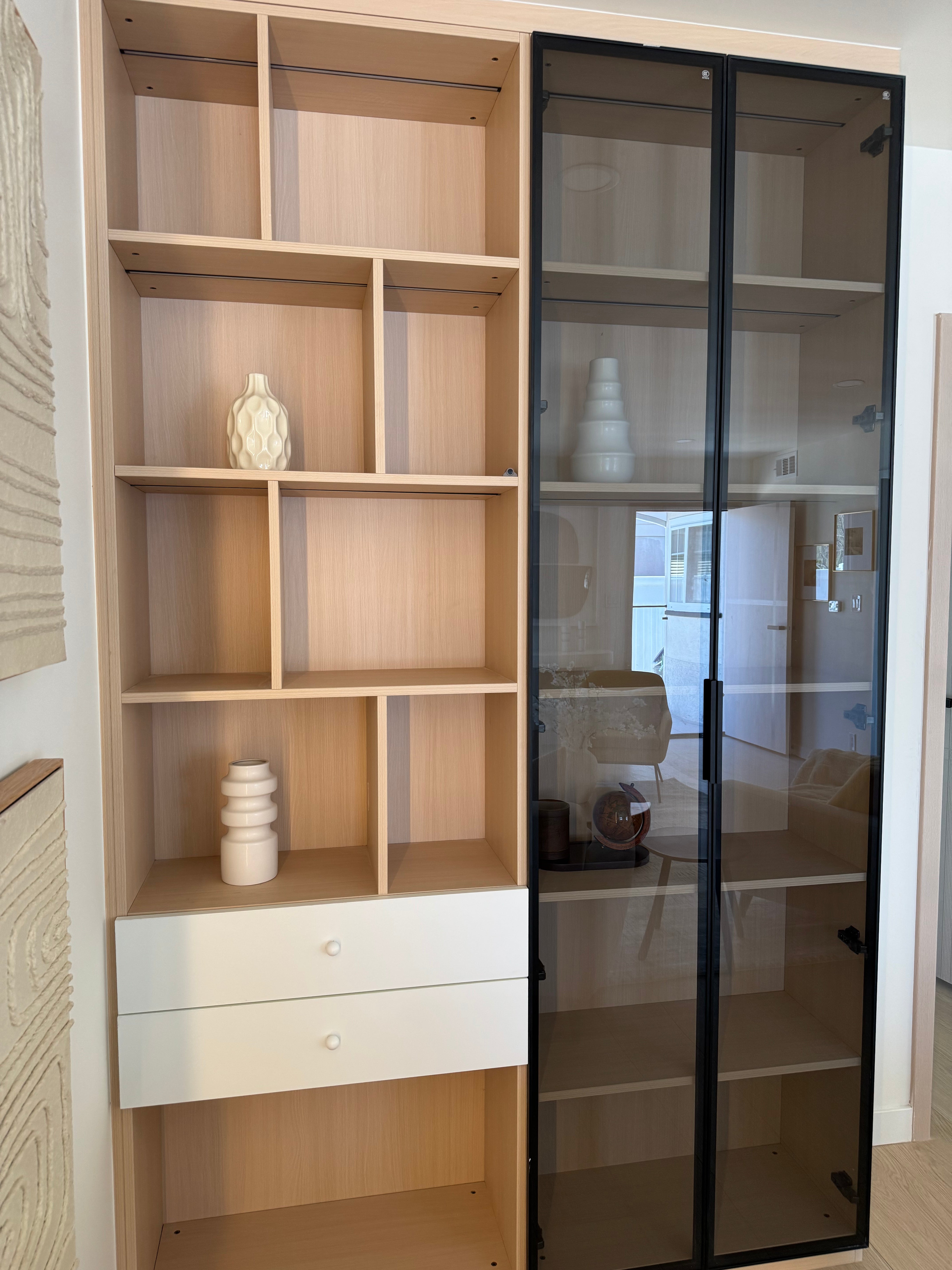 Customization may include shelf spacing, overall height and width, material selection, finish tone, backing panels, and hardware details. Rather than relying on standard module sizes, shelving dimensions can be adjusted to suit wall proportions and storage requirements.