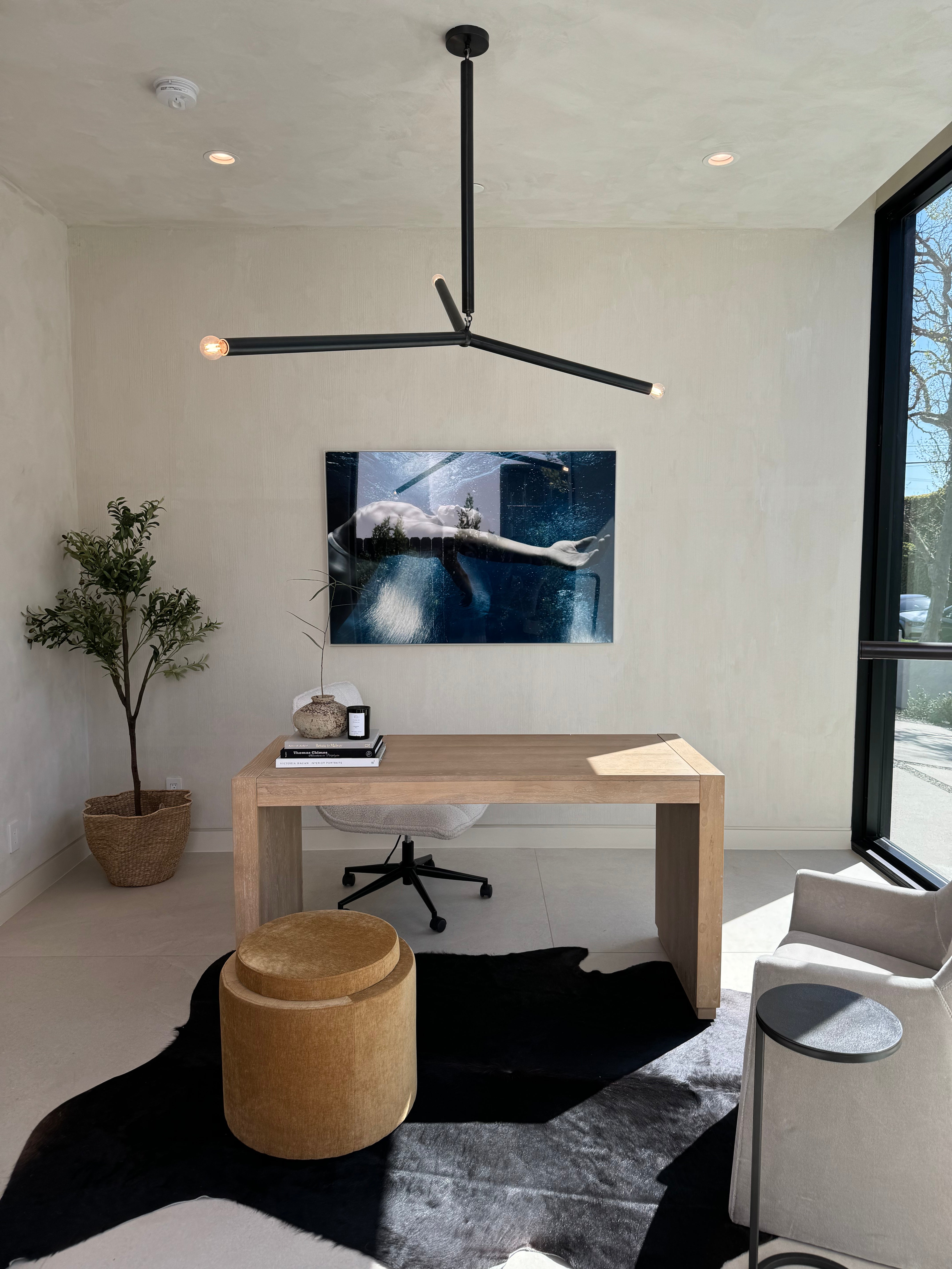 Custom desk systems are designed to provide a stable and proportioned work surface tailored to the room’s layout. Desk length, depth, and height can be configured to support different work styles while maintaining visual balance within the space.