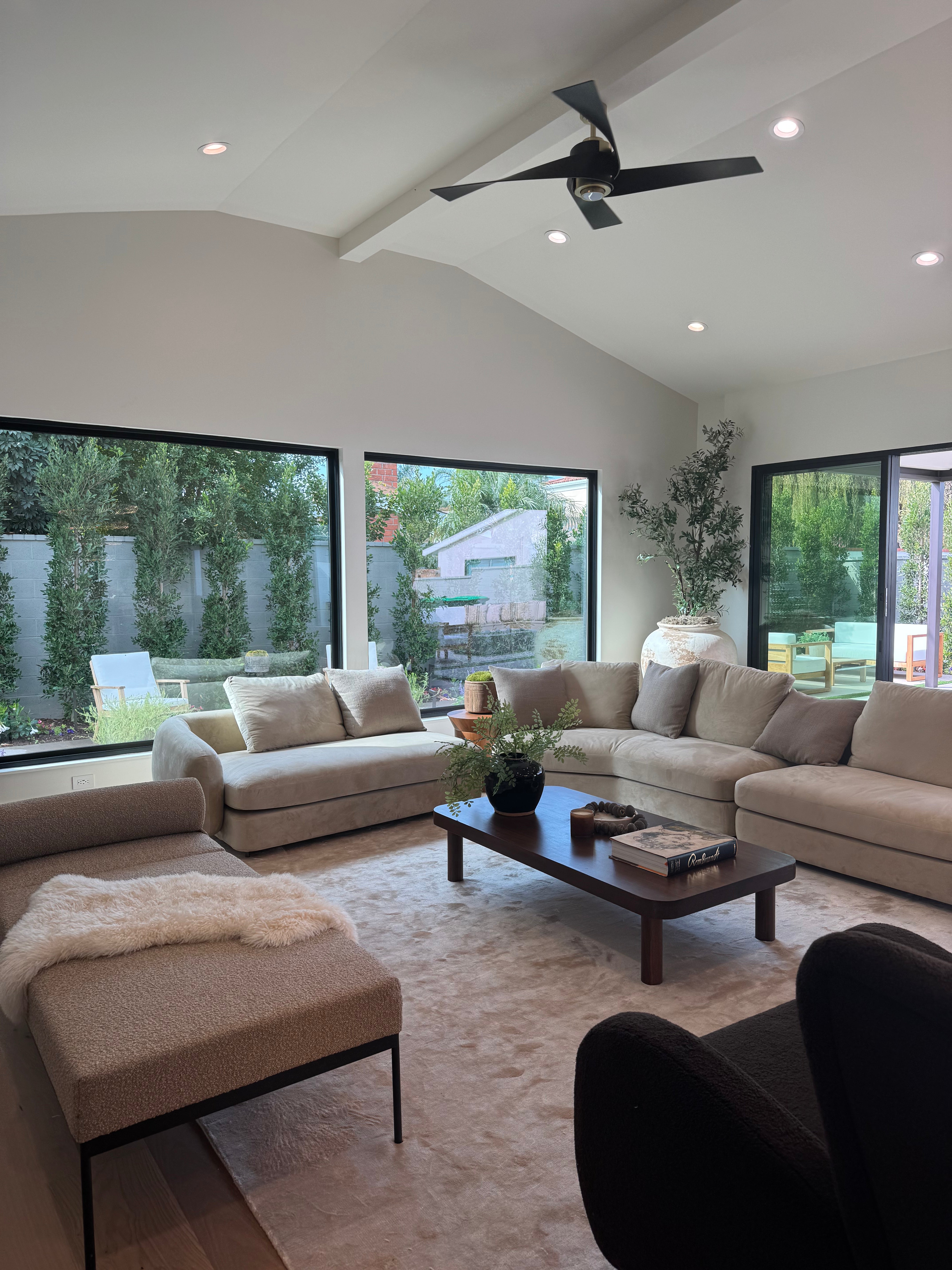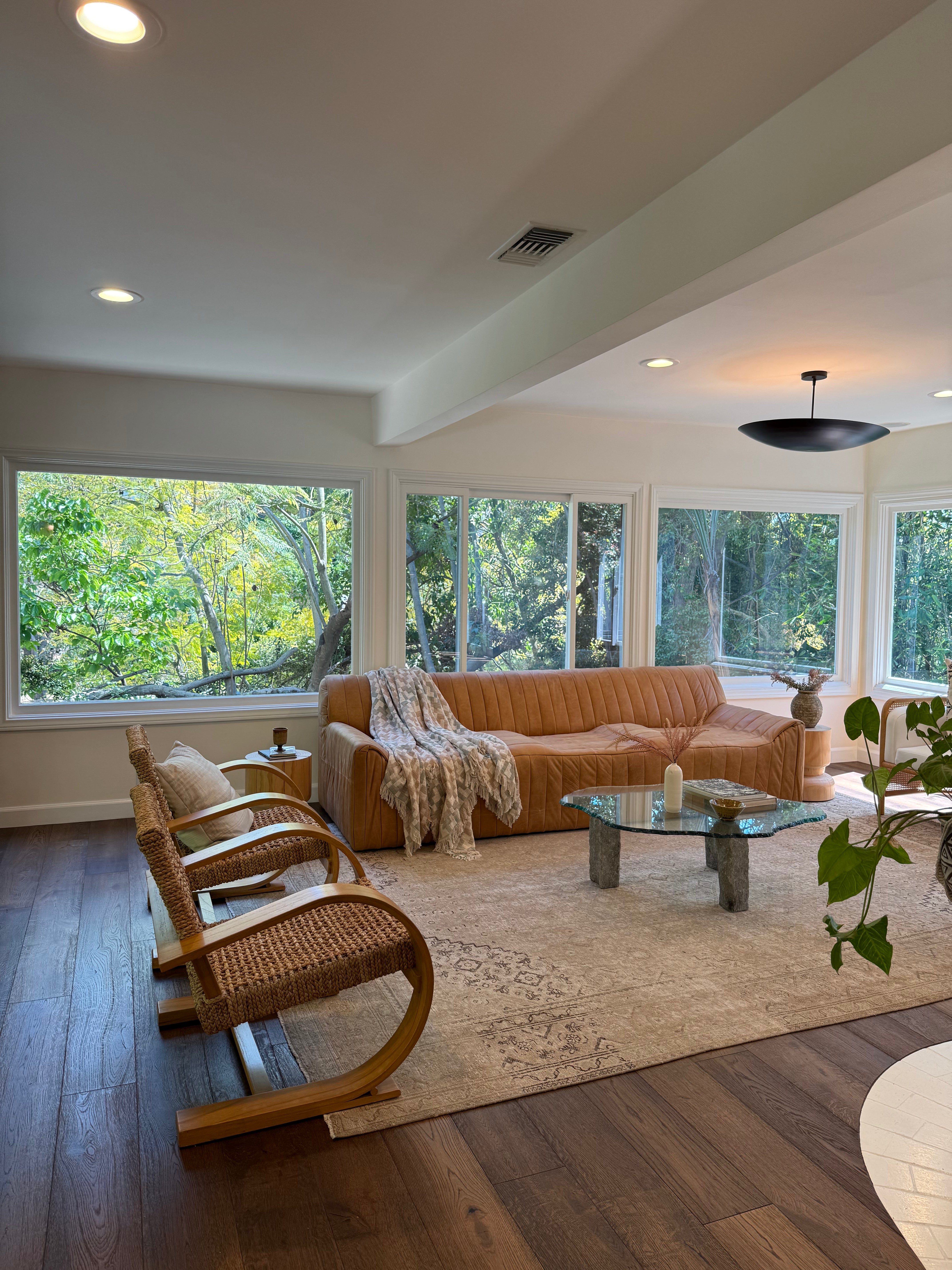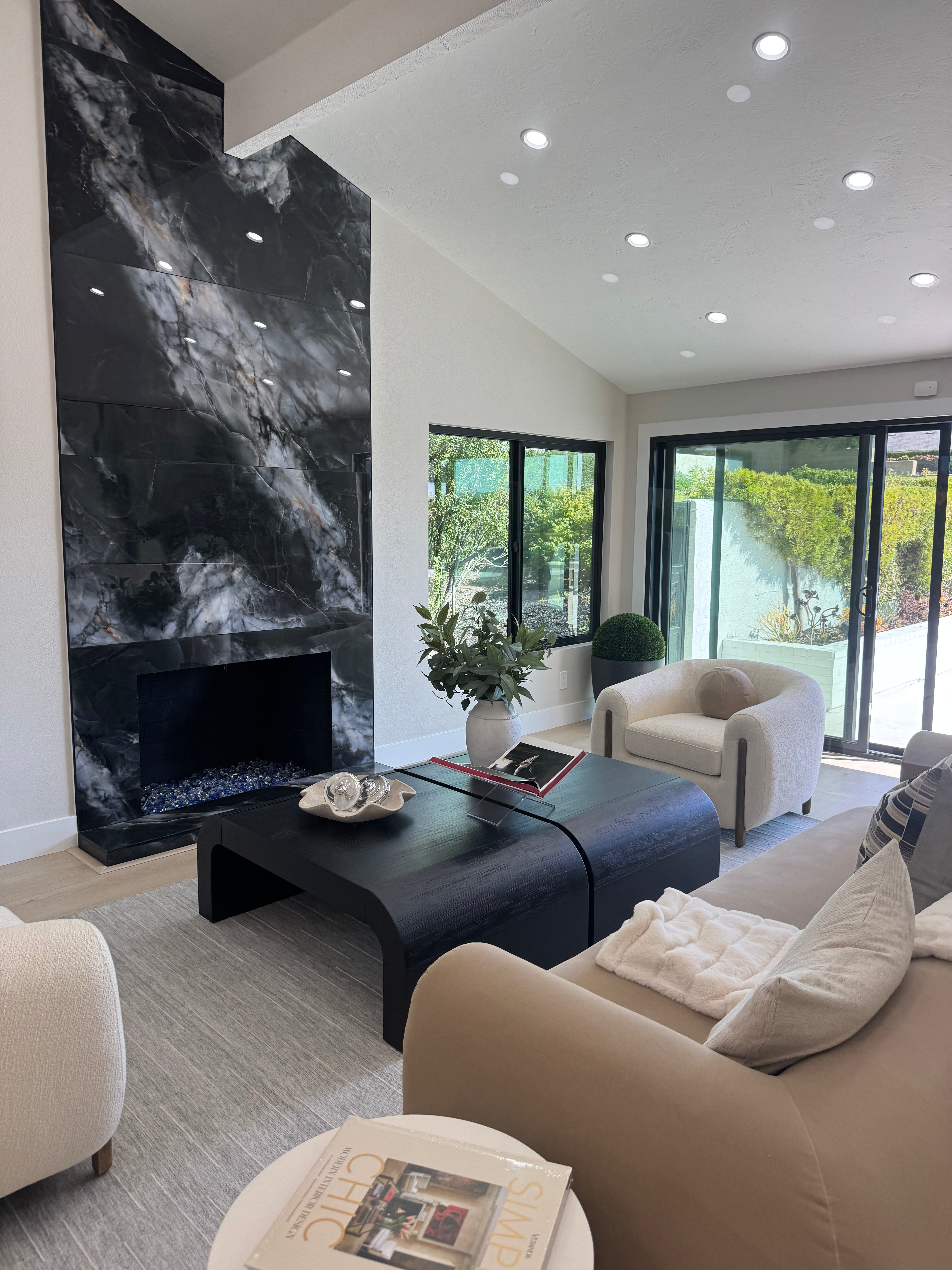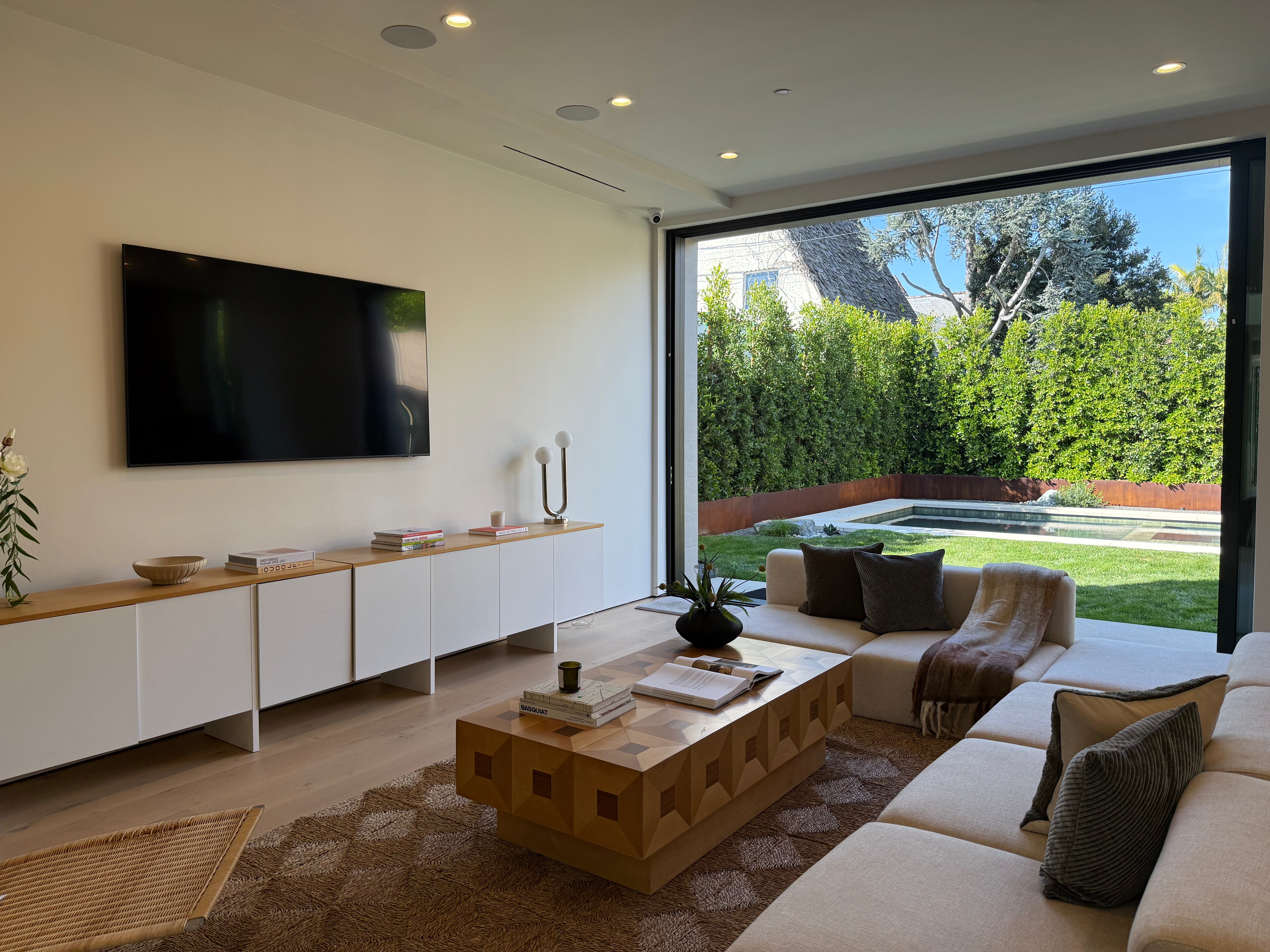 This living room renovation focuses on reconfiguring structure to enhance scale, light, and spatial clarity. By raising the ceiling and reworking structural elements, the space is opened up to feel more expansive and balanced. Architectural changes are paired with carefully selected wall treatments, surfaces, and integrated lighting to create a cohesive backdrop for everyday living.