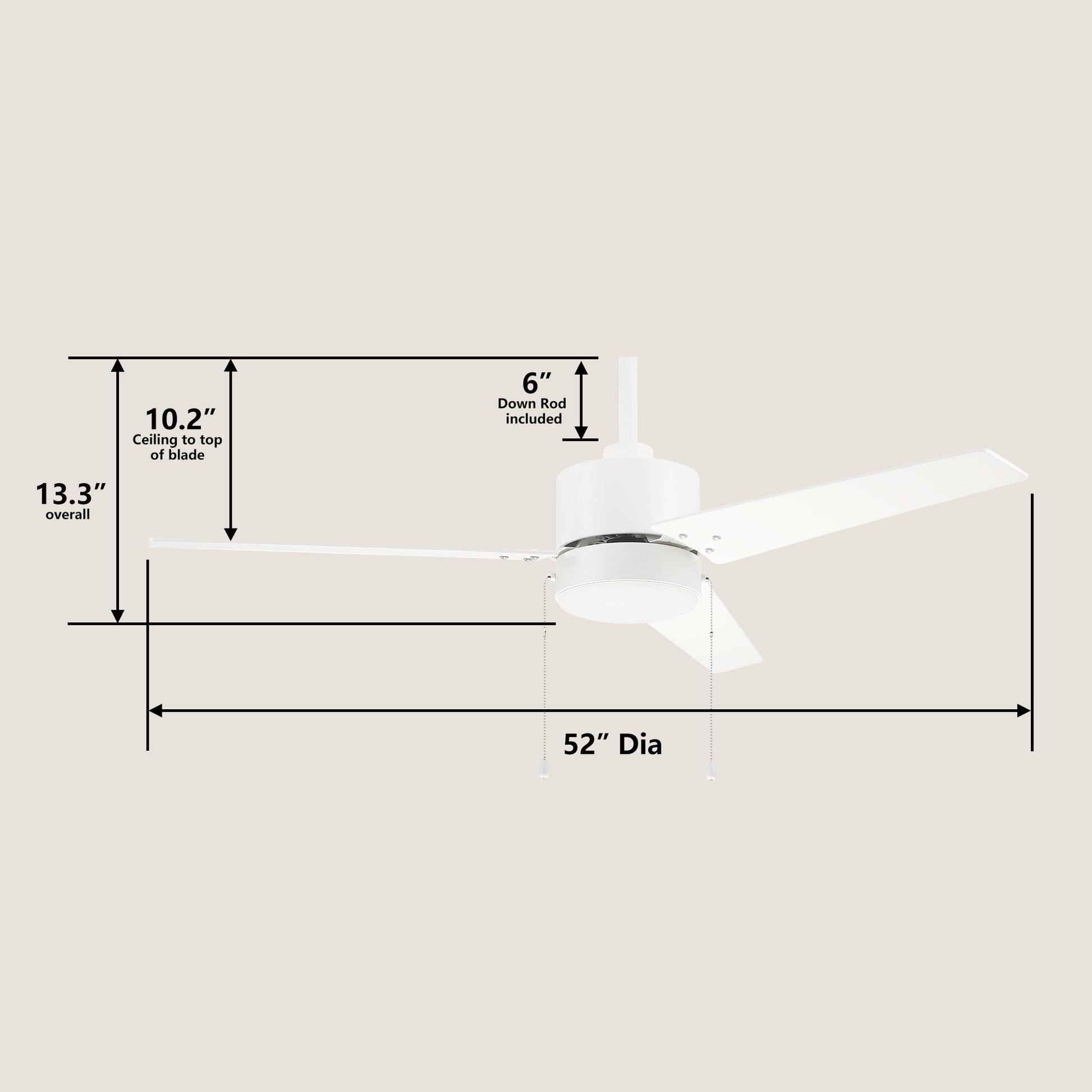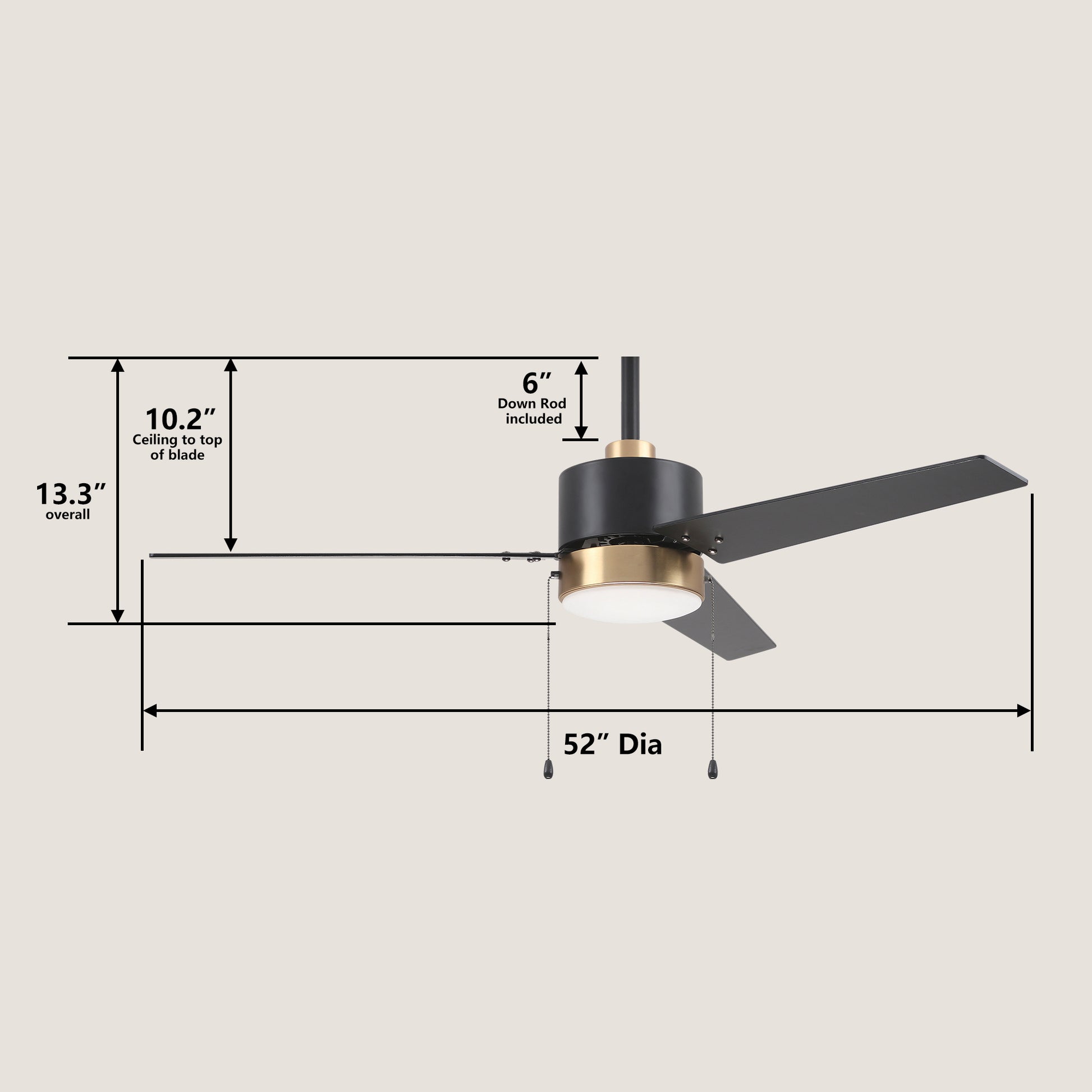 Jovian 52" AC Ceiling Fan with LED Light and Pull-Chain Control