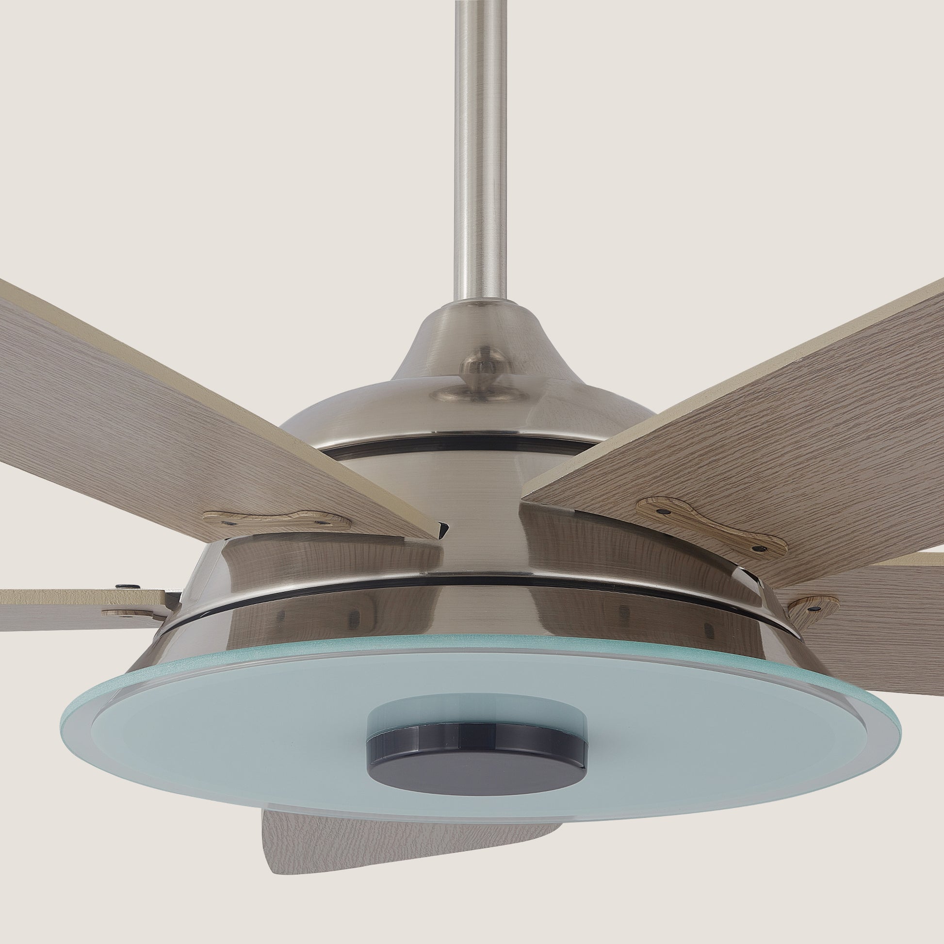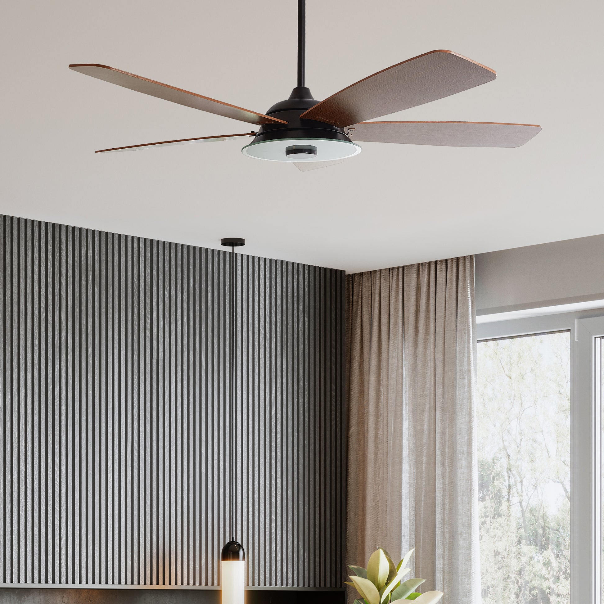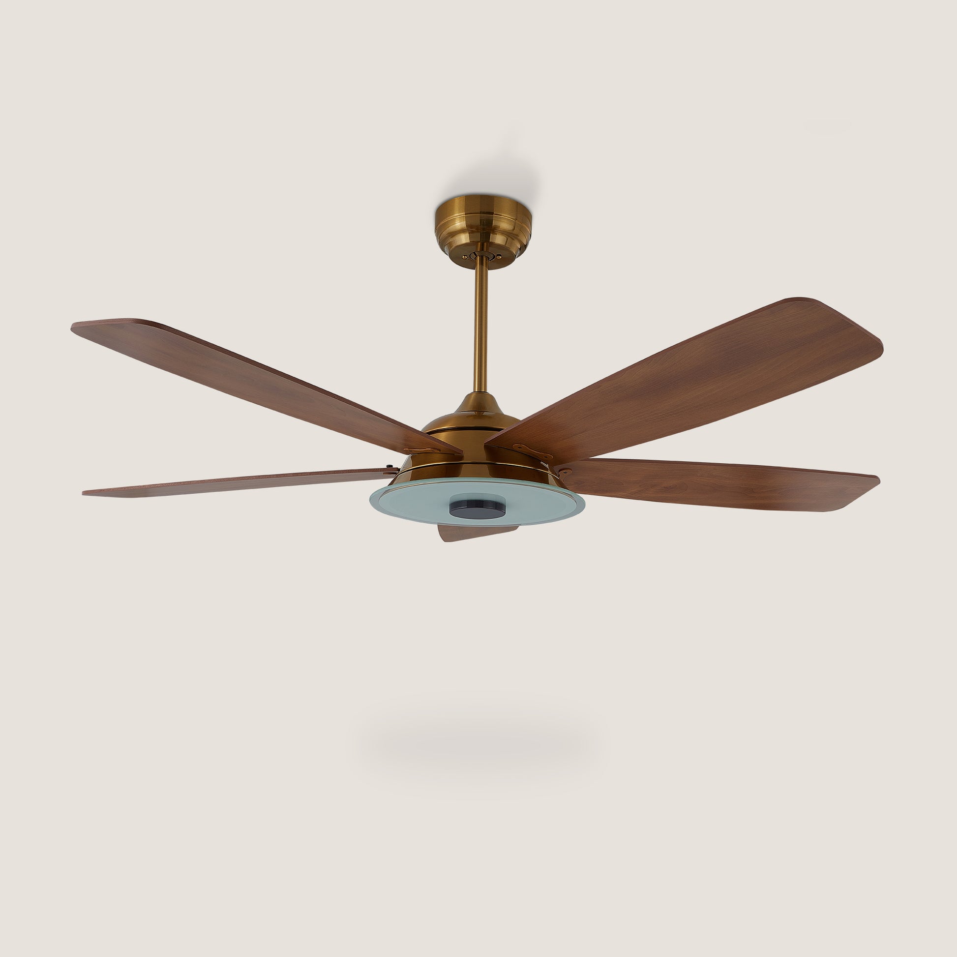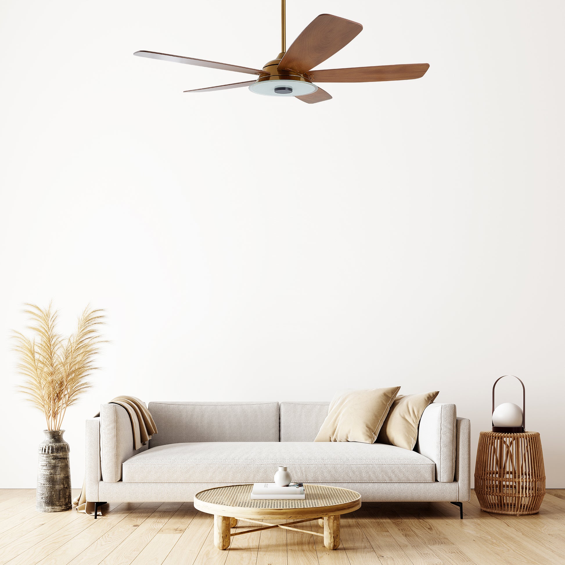 Traditional Design, Powerful Technology & Versatile Control: The Kraz Smart ceiling fan is elegant, powerful, and convenient with 5 classic fan blades, a premium glass light cover, and a simple yet refined metal exterior. Available in an array of versatile finishes, from gold to fine wood, the Kraz will blend seamlessly with the decor of your preference. On the interior, the Kraz features an advanced DC motor, versatile LED lighting, and Smart technology for optimal comfort in any space. Control the Smart ceiling fan using the provided remote control, smartphone control when linked to the Smart app, and voice control when connected to Siri Shortcuts, Google Assistant, and Amazon Alexa.