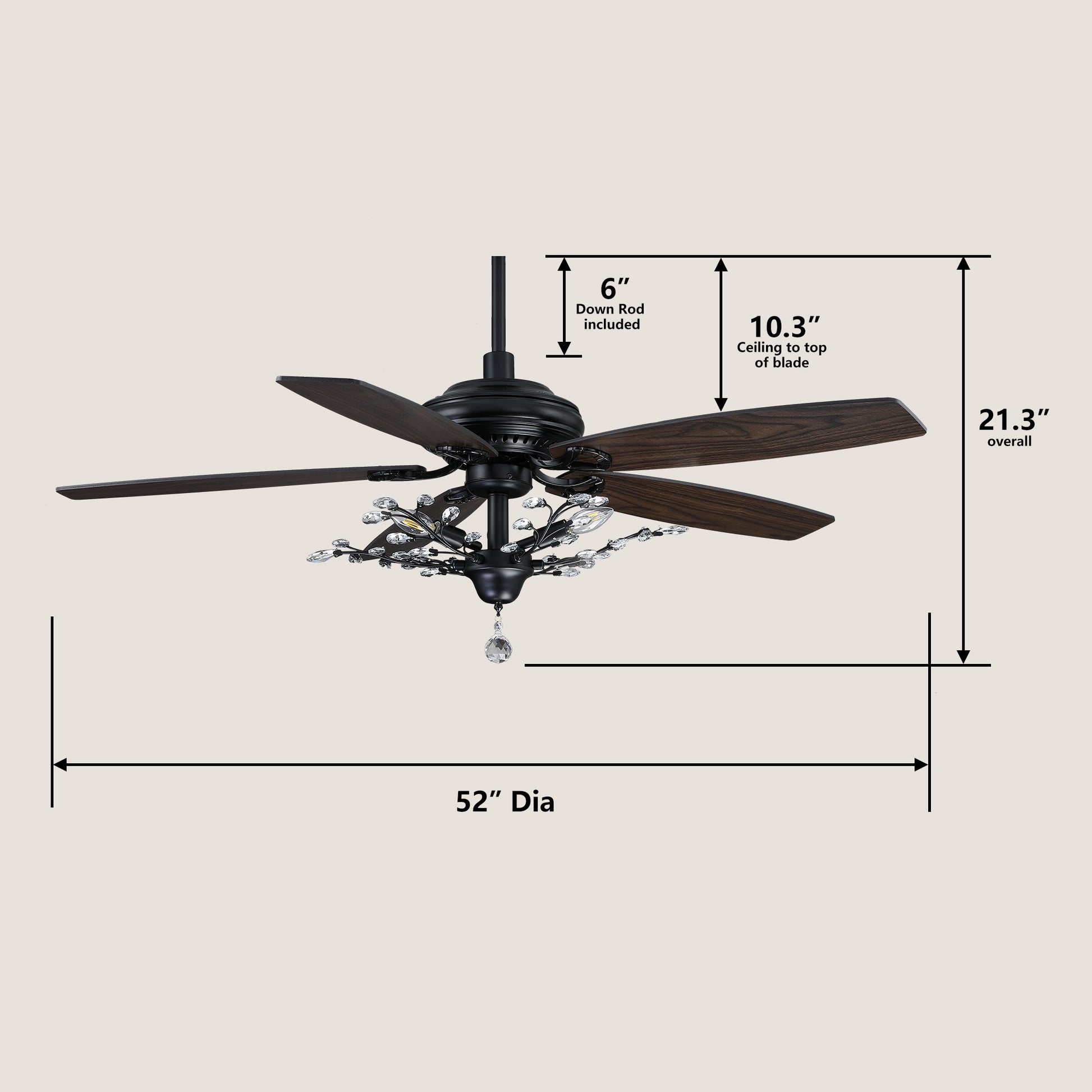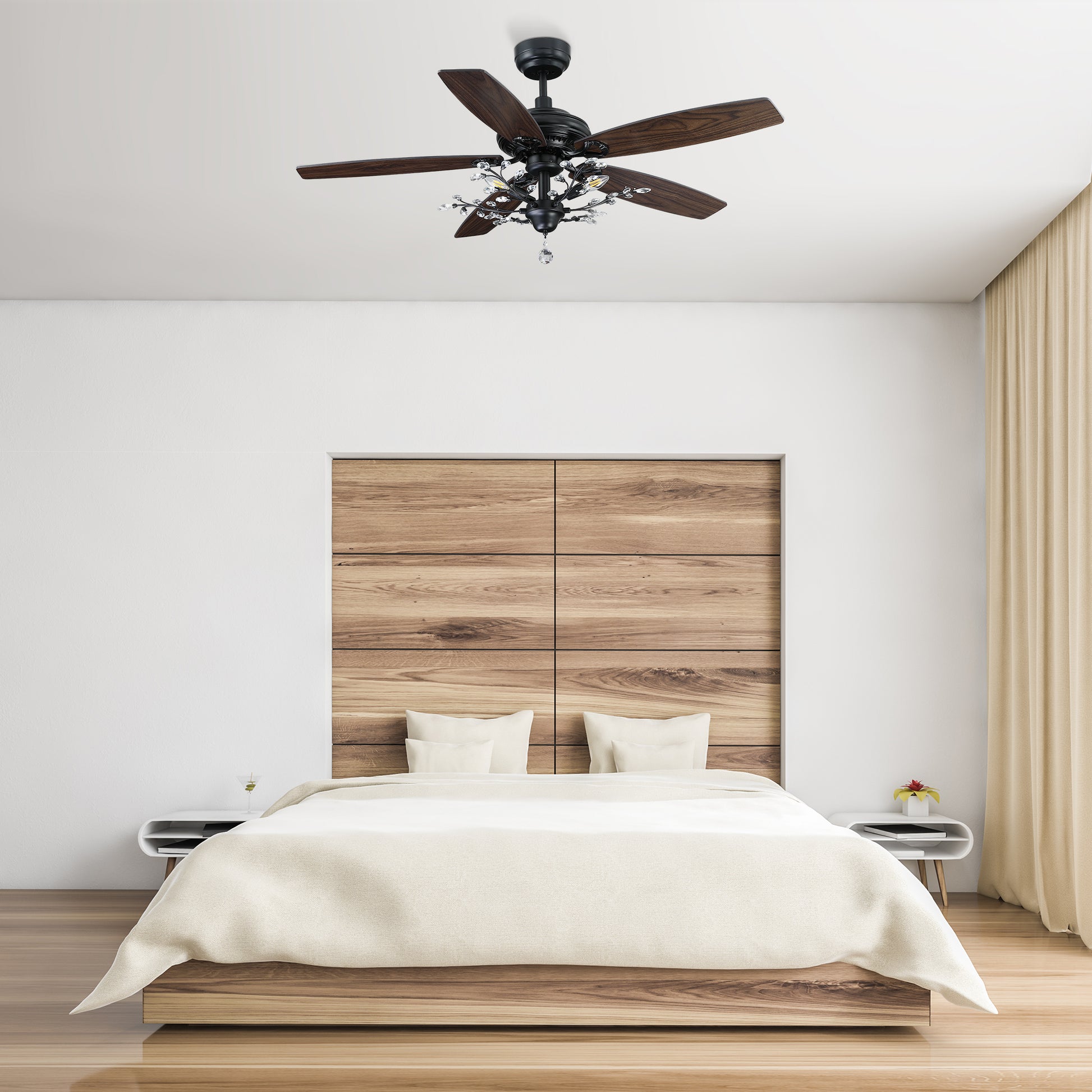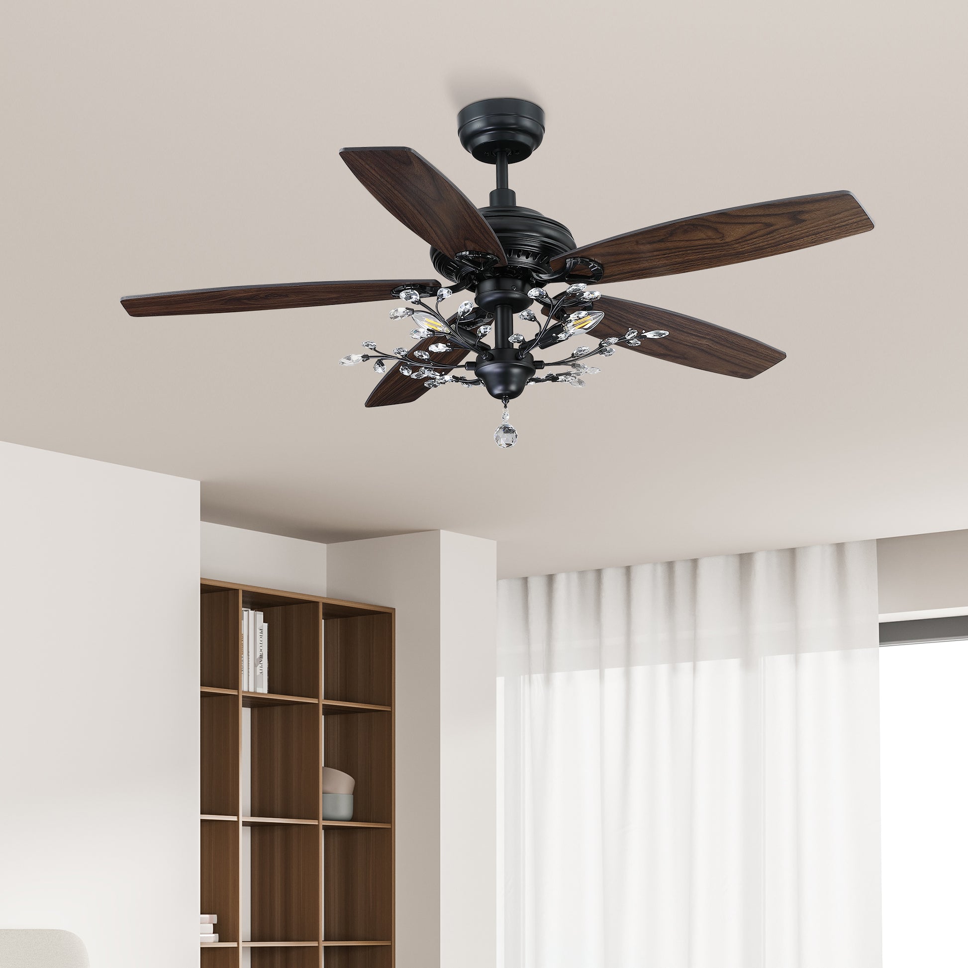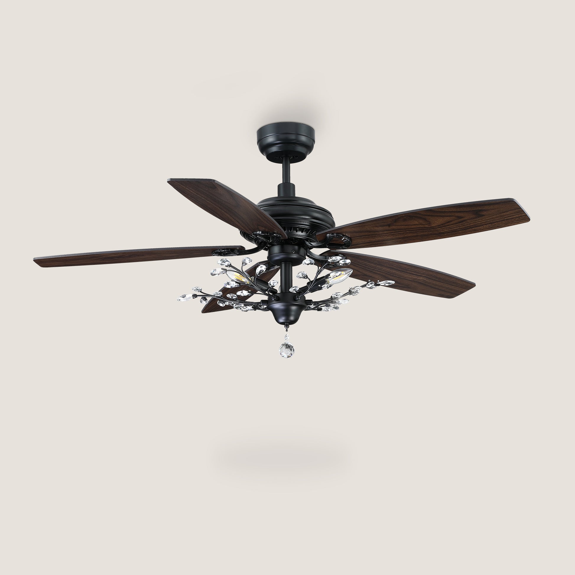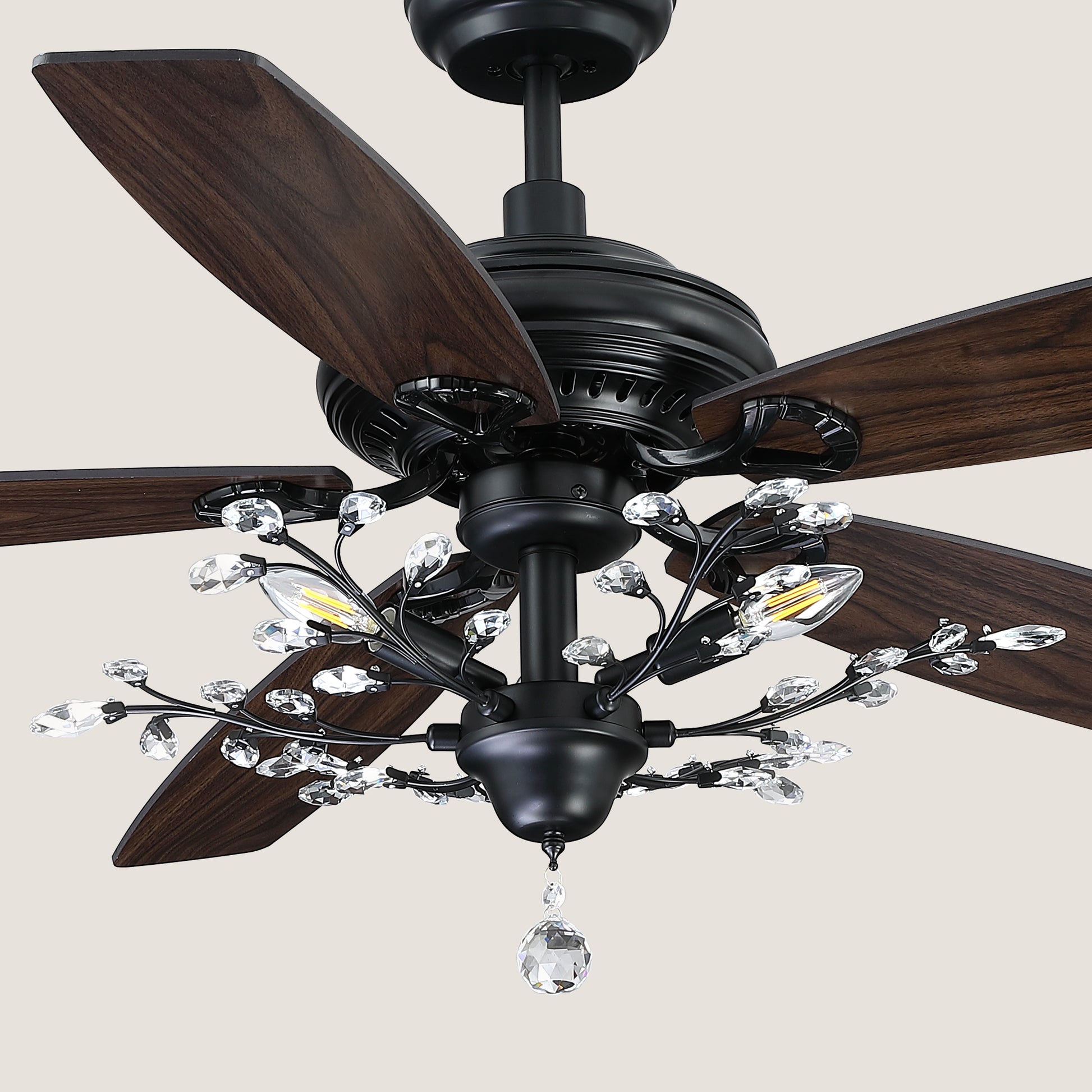 Crystals, Cooling and Charm: The Nervia 52" ceiling fan brings the perfect amount of style and comfort to any indoor area with its reversible wood blades, elegant crystal light accessory, powerful DC motor, and convenient remote control. Reverse the fan blades from light wood to a dark wood finish to complement or contrast with your home decor style. Use the Nervia's provided remote control to easily adjust your fan settings without leaving the comfort of your seat; adjust the speed, light, and direction, and even set a timer!